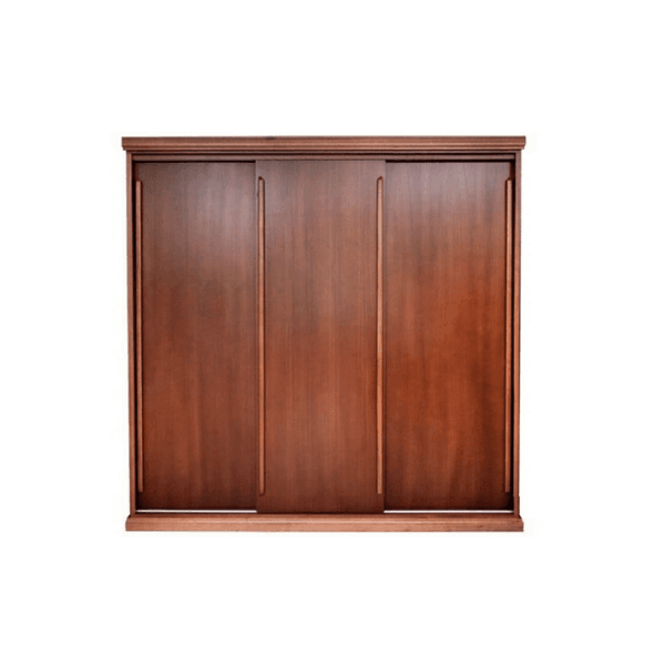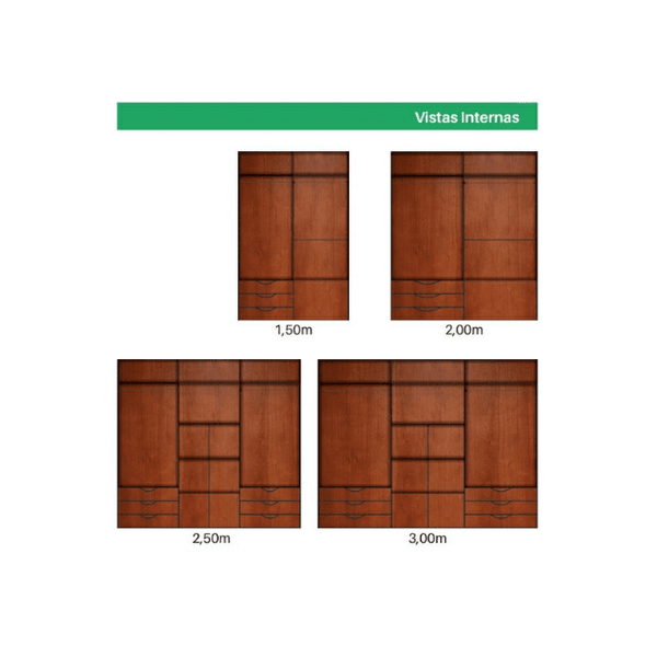 Possui portas de correr e gavetas internas, oferecendo mais organização e melhor aproveitamento de espaço.