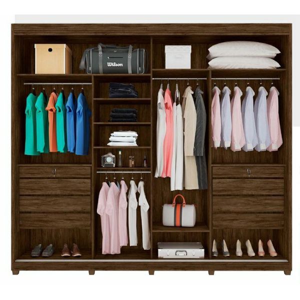 Com pés em madeira e ótimas divisórias internas, ele oferece excelente profundidade (0,62m) e um espaço bem planejado para organizar roupas, calçados e acessórios.