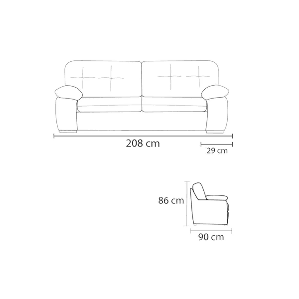 DIMENSÕES DO PRODUTO: | 3 lugares: 2,02 m x 0,88 m 0,90 m (CxPxA) |